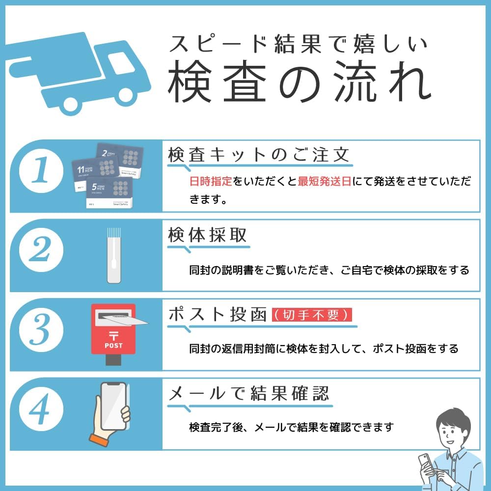 【内容|補足】 採取容器・検査キットご利用方法・検査申込書・返送用封筒|匿名性の高いパッケージでお届け。申し込みも匿名でOKです。研究用試薬を用いた検査であり診断には使えませんのでご注意ください。
