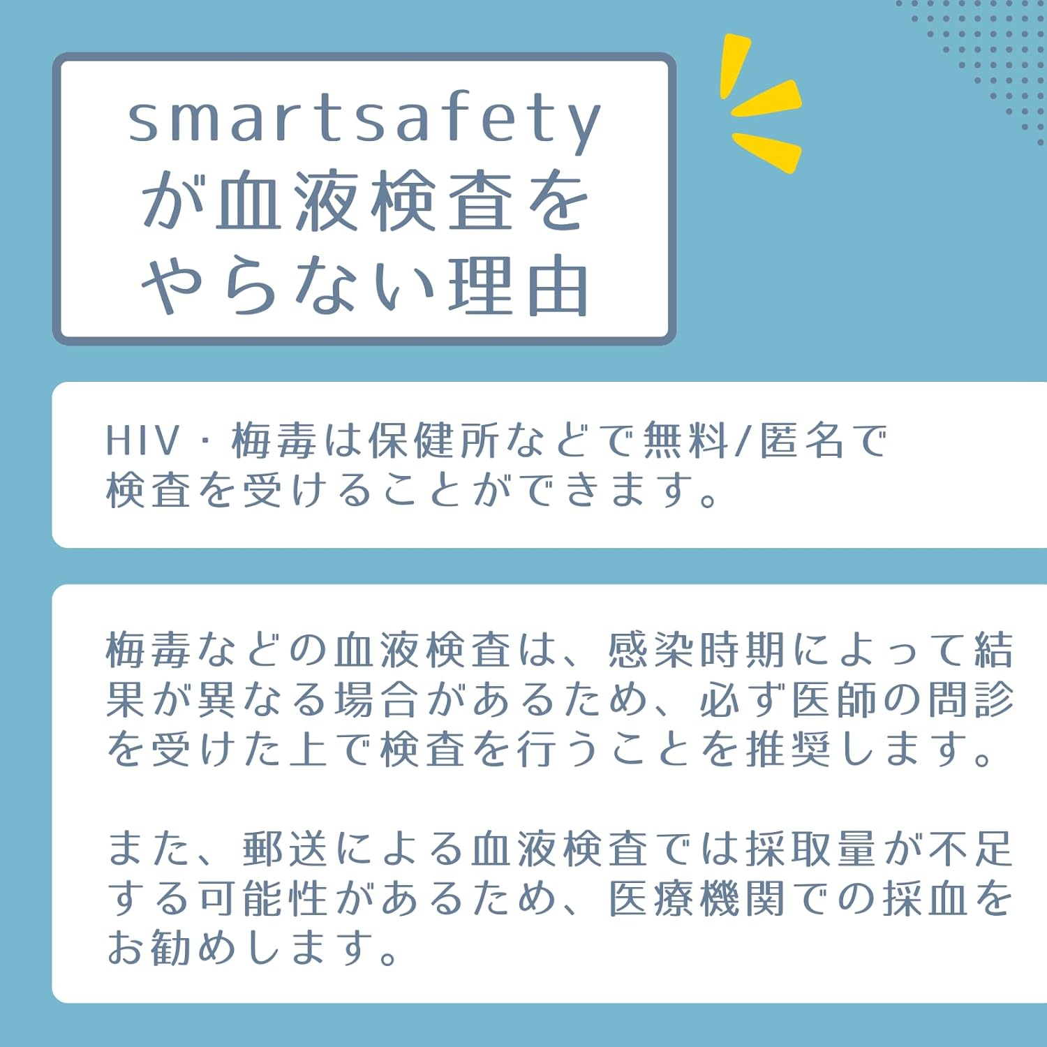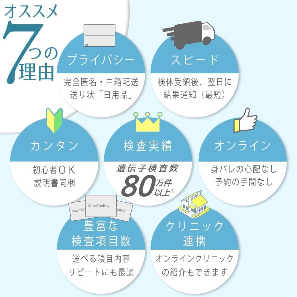 【内容|補足】 採取容器・検査キットご利用方法・検査申込書・返送用封筒|匿名性の高いパッケージでお届け。申し込みも匿名でOKです。研究用試薬を用いた検査であり診断には使えませんのでご注意ください。
